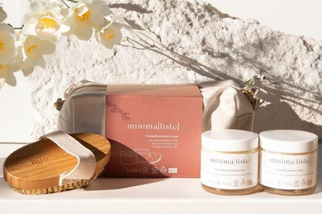 >Un gommage hydratant corps 125 ml : Fondez pour le Gommage Hydratant Corps minima[liste] au sucre blond bio et au délicat parfum tonifiant de pamplemousse ! Enrichi en huile de coco bio, huile de jojoba et en cire de carnauba bio, ce gommage corporel élimine efficacement toutes les peaux mortes et laisse la peau douce, souple et protégée.